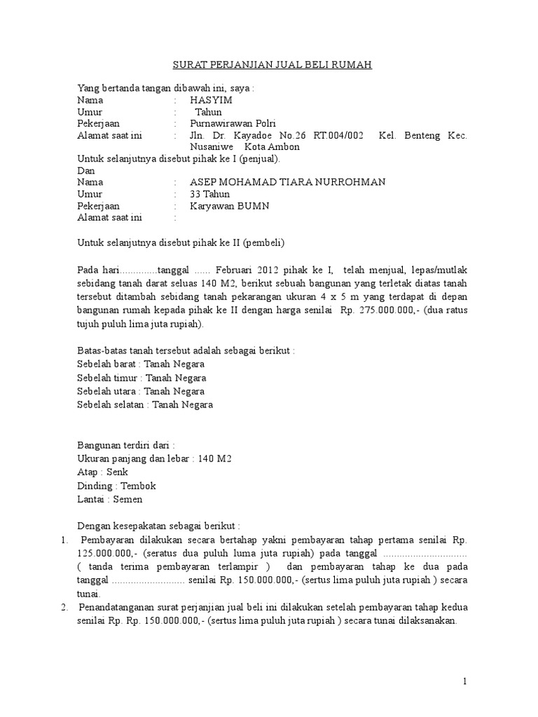 20+ contoh surat perjanjian kerjasama jual beli tanah, hutang, kontrak/sewa rumah dll yang baik dan benar terupdate. Daftar isi contoh umum surat perjanjian jual beli yang baik dan benar contoh akta jual beli rumah dan tanah Copyright surat perjanjian jual beli rumah. Surat perjanjian jual beli merupakan surat yang dibuat oleh penjual dan pembeli untuk menerangkan atau menjelaskan hak dan kewajiban kedua belah demikianlah yang dapat kami tuliskan tentang contoh surat pejanjian jual beli rumah, pembahasan selanjutnya adalah contoh surat perjanjuan. Setiap surat perjanjian jual beli rumah tentunya akan memuat beberapa poin kesepakatan bersama.